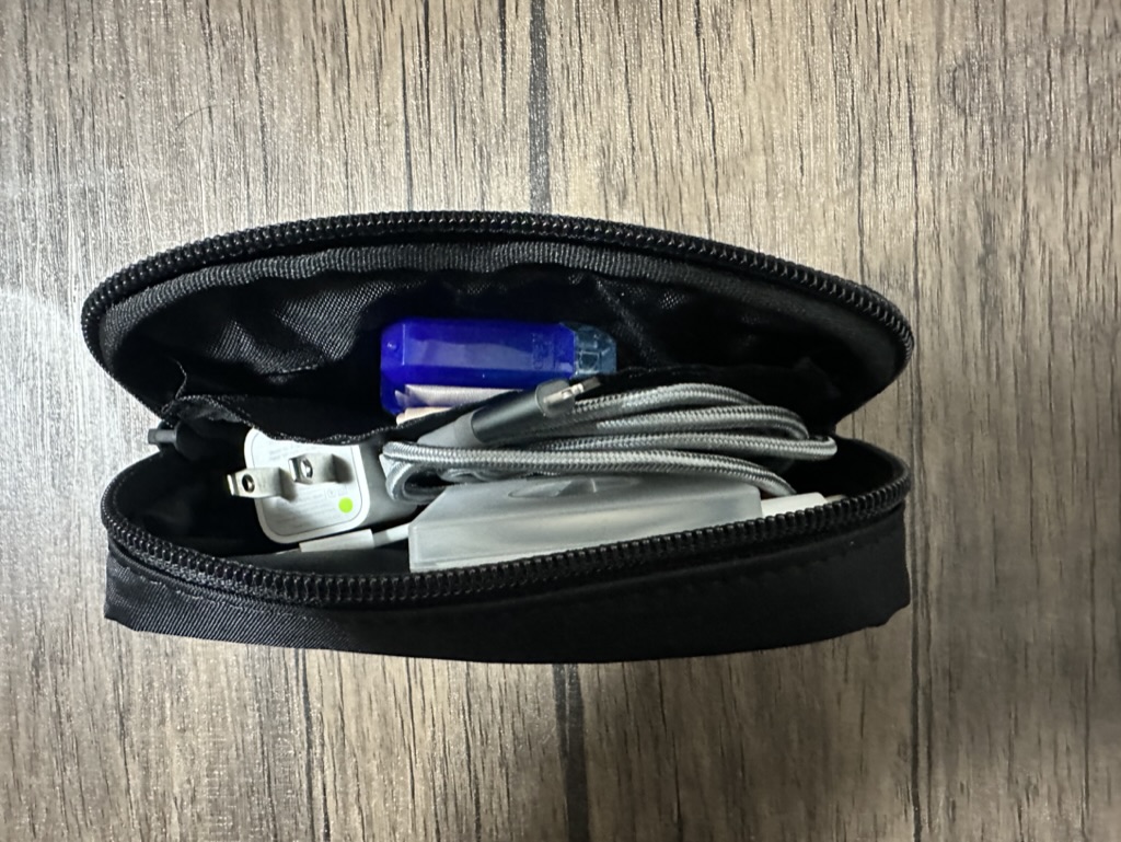 1つ目はナイロン手付ポーチです。細かいメイク用品などの整理に便利と記載されていましたが、私はケーブル類やイヤホン等を入れています。