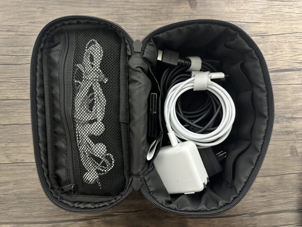 MacBookやNitendo Switchのアダプタ等を収納できるポーチがないかなと探していた時にこのポーチに出会いました。