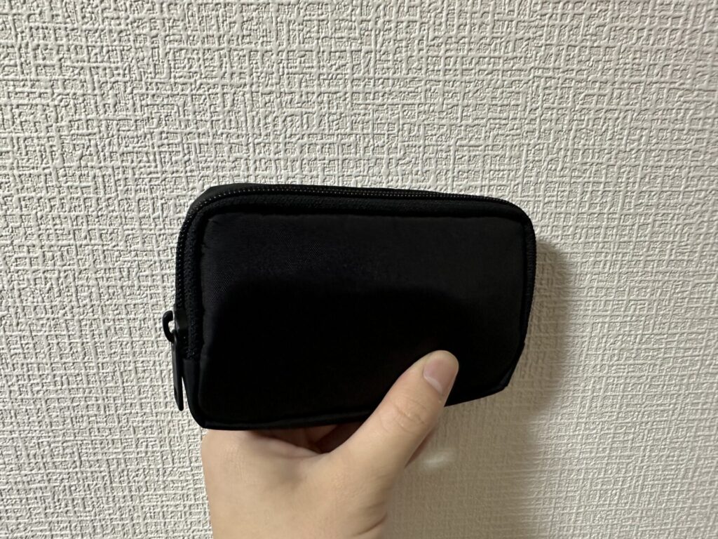 3つ目はナイロンコンパクトポーチです。このポーチは商品名の通りコンパクトでズボンのポケットに入るサイズです。普段このポーチには目薬や持ち歩く用のライトニングケーブルなど入れています。
