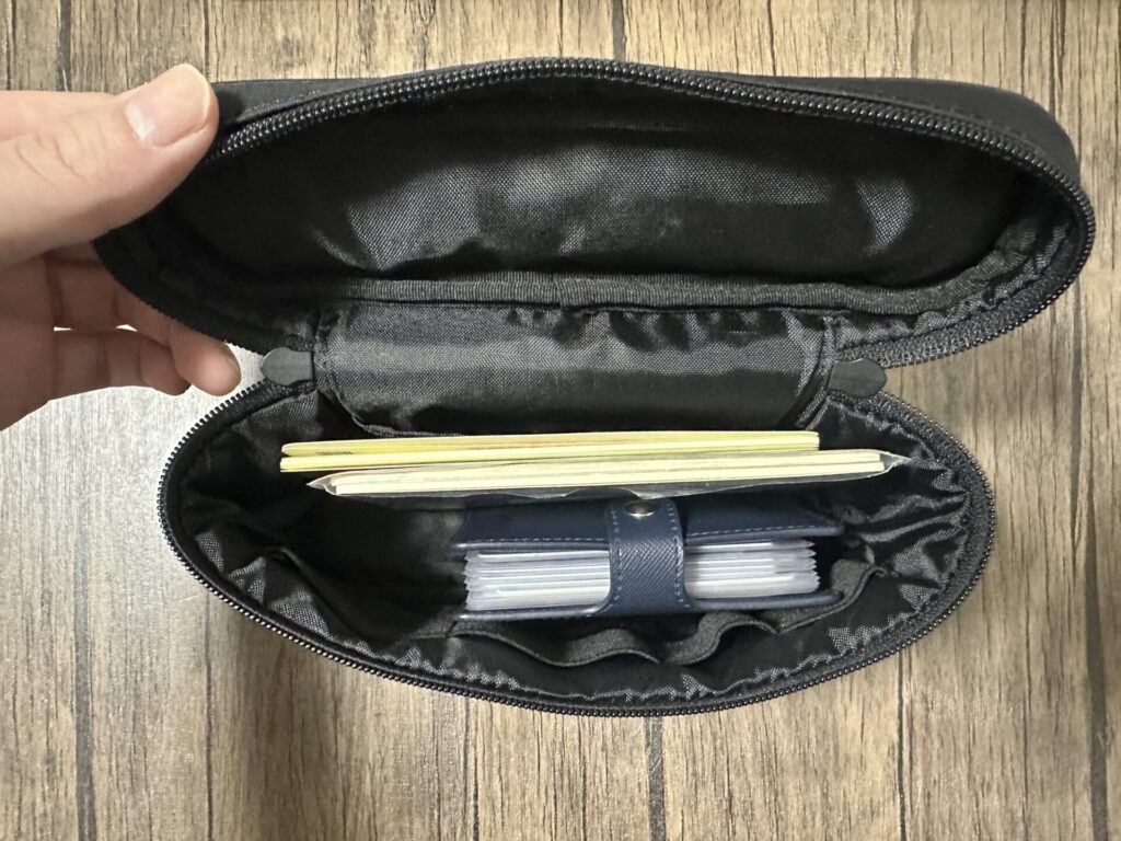 2つ目はナイロン手付ポーチ・薄型です。先ほど紹介したナイロン手付ポーチの薄型バージョンです。私はこのポーチには通帳やカード類、印鑑等を入れています。